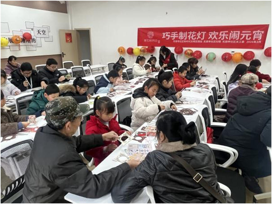 无想寺社区在街道社区教育中心举办“巧手制花灯 欢乐闹元宵”活动,邀请辖区亲子家庭共同参与。现场,志愿者为大家讲述元宵节的由来与传统民俗,着重讲解闹花灯驱邪纳福、吉祥平安的美好寓意,并现场演示宋锦花灯的制作步骤。在家长的协助下,青少年认真比对灯框尺寸、裁剪粘贴宋锦,一步步完成灯架搭建、灯串安装等工序,制作出一盏盏造型雅致、流光溢彩的宋锦花灯。猜灯谜环节同样精彩纷呈,涵盖传统文化、生活常识的灯谜,让亲子家庭在互动探讨中感受汉字智慧。