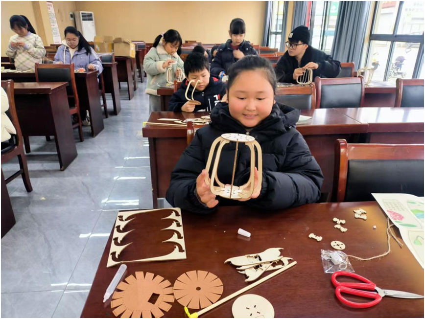 陈卞村开展“巧手做花灯 欢乐闹元宵”主题活动。活动以趣味互动问答拉开序幕,志愿者与青少年互动探讨元宵节的传统习俗,充分调动大家的参与热情。在手工制作环节,志愿者手把手指导青少年拼接灯笼木架、裁剪粘贴灯笼纸,青少年专注投入、互帮互助,将零散的制作材料变成一盏盏精致可爱的花灯。看着自己亲手完成的劳动成果,青少年的脸上满是成就感与幸福感。